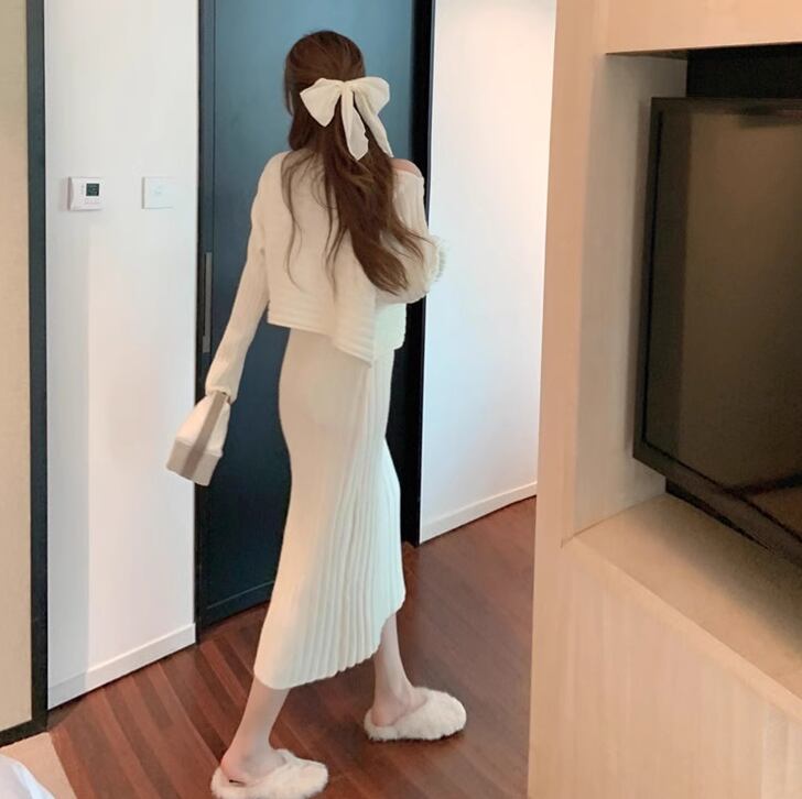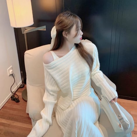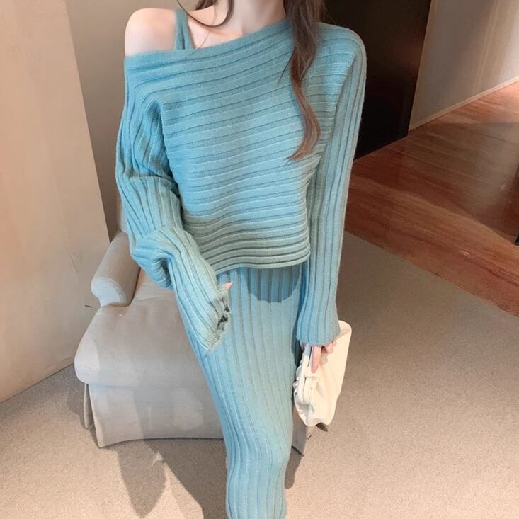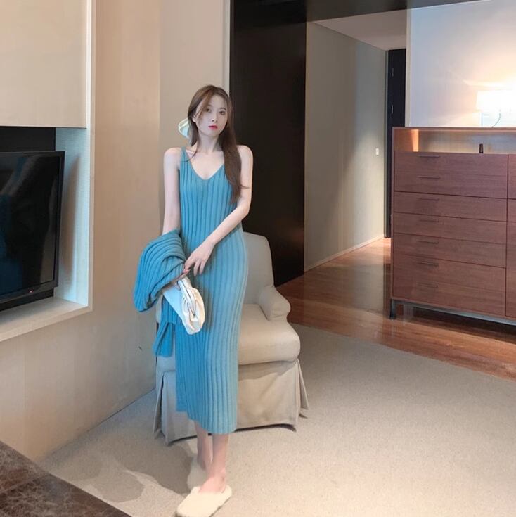 レディース トップス ニット セットアップ 2点セット キャミワンピ ミモレ丈 長袖 ラウンドネック 襟なし セミフレア タイト スリム 細身 フェミニン 大人可愛い きれいめ シンプル カジュアル 上品 おしゃれ こなれ感 ラフ 主役級 存在感 都会的 ベーシック ナチュラル 無地 秋 冬 ロングシーズン 20代 30代 お出かけ 休日 ショッピング カフェ 重ね着 韓国 オルチャン コーデ 楽ちん 普段使い 着回し モテ トレンド 流行 インスタ映え 定番 M L XL 2XL アプリコット グリーン