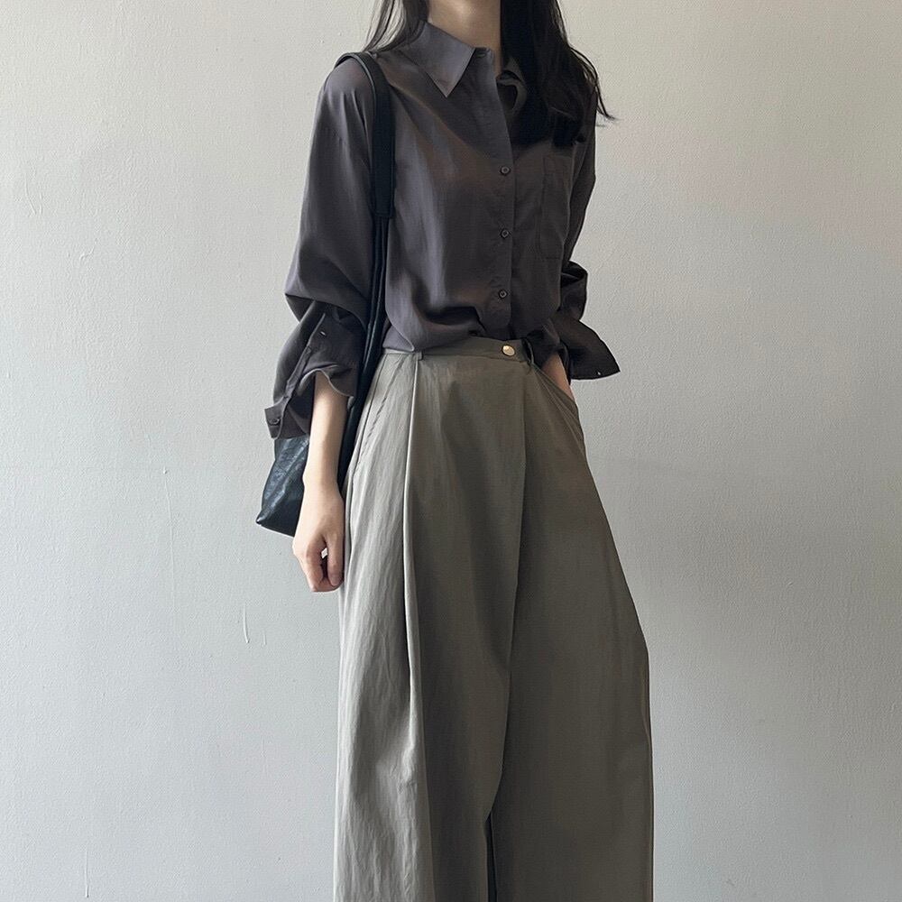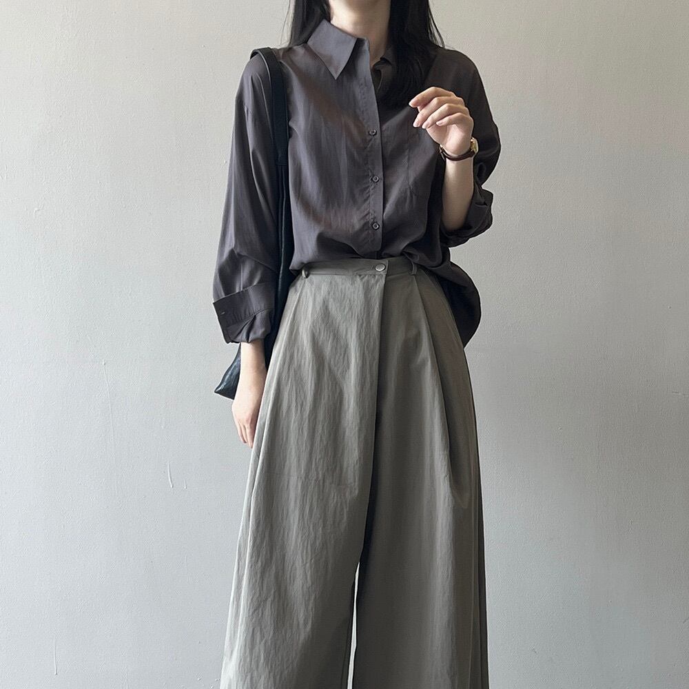 レディース トップス シャツ ブラウス 前開き 長袖 Vネック 襟付き 角襟 かわいい 大人可愛い きれいめ シンプル 上品 おしゃれ かっこいい レトロ こなれ感 ラフ メンズライク マニッシュ クール 抜け感 キュート クラシカル カレッジ風 学生風 ベーシック ナチュラル 無地 春 秋 OL 通勤 学生 通学 デート お出かけ イベント 休日 重ね着 韓国 オルチャン 楽ちん 体型カバー 普段使い 着回し レイヤード 定番 M L ゆったり ゆる 白 ホワイト グレー オレンジ くすみ 緑 グリーン