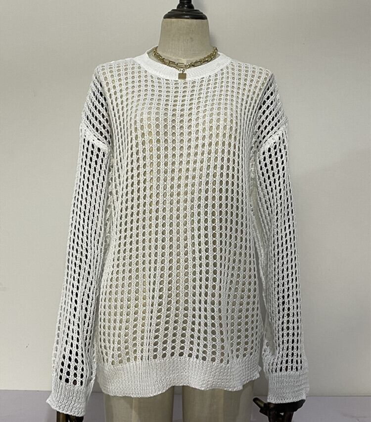 レディース トップス ニット プルオーバー サマーセーター サマーニット 長袖 ラウンドネック フェミニン ストリート 透け感 シースルー かわいい 大人可愛い シンプル カジュアル おしゃれ かっこいい レトロ こなれ感 ラフ 個性的 クール 抜け感 キュート ベーシック アメリカン プレッピー アクティブ ナチュラル 無地 お出かけ ビーチ 休日 バカンス 重ね着 楽ちん 普段使い 着回し レイヤード トレンド 流行 定番 S M L XL ゆったり ゆる 白 ホワイト 黒 ブラック グレー カーキ