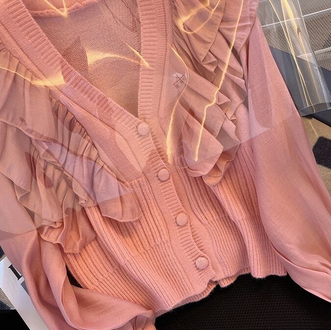 フリル×Vネックで甘さと上品さを絶妙にミックス。
