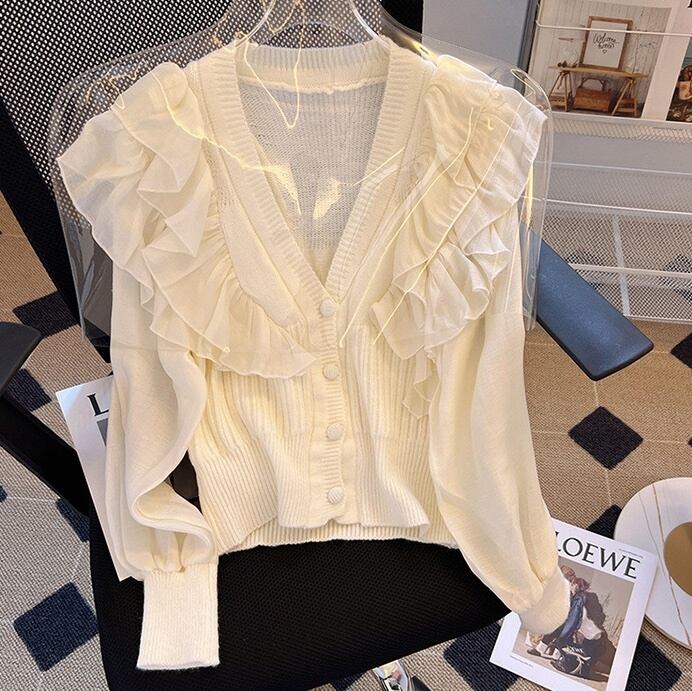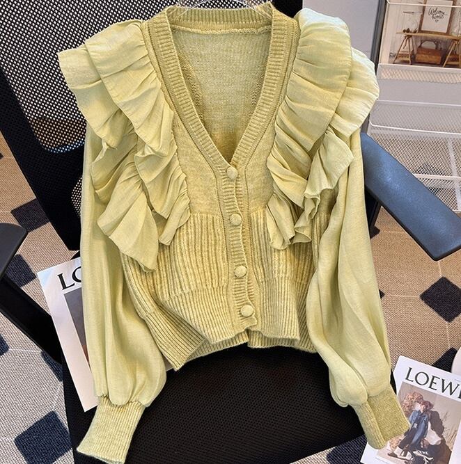 レディース トップス ニット セーター カーディガン 前開き 長袖 Vネック スマート フェミニン フリル ハイウエスト かわいい 大人可愛い おしゃれ レトロ こなれ感 ガーリー エレガント 抜け感 ヴィンテージ ラブリー キュート ロリータ ロマンティック ナチュラル 無地 春 秋 デート お出かけ イベント レストラン 女子会 休日 ショッピング カフェ 重ね着 韓国 オルチャン 普段使い 着回し レイヤード 清楚 トレンド 流行 インスタ映え フリーサイズ オフホワイト ピンク 緑 グリーン