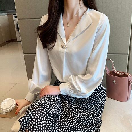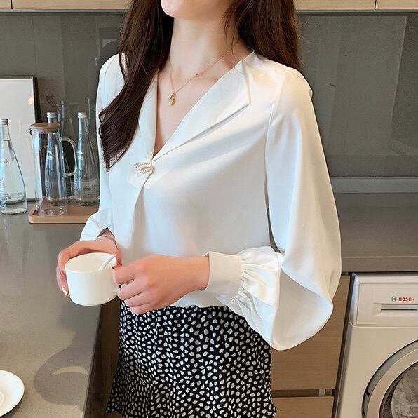 レディース トップス シャツ ブラウス 長袖 Vネック 襟付き 角襟 フェミニン かわいい 大人可愛い きれいめ 上品 おしゃれ かっこいい レトロ エレガント 存在感 フォーマル かっちり キュート ラグジュアリー クラシカル ロマンティック 無地 入学式 入園式 卒業式 卒園式 母の日 授業参観 ママ お出かけ パーティー イベント レストラン 休日 重ね着 韓国 オルチャン レイヤード トレンド 流行 インスタ映え S M L XL 2XL 小さいサイズ 大きいサイズ 白 ホワイト グレー パール