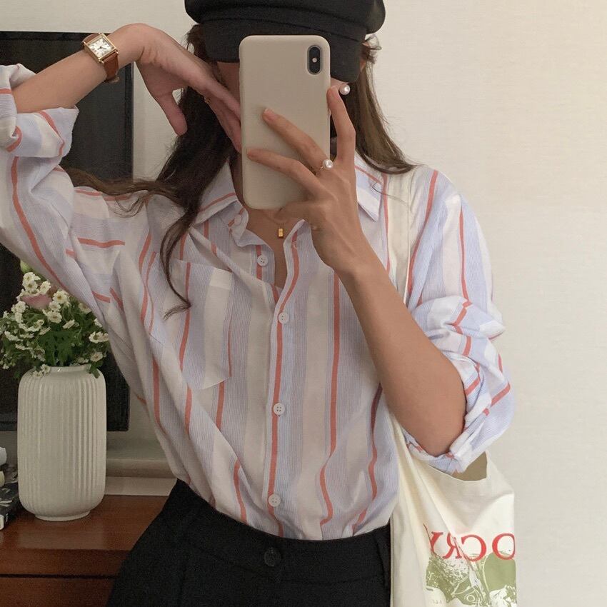 レディース トップス シャツ ブラウス 前開き 長袖 Vネック 襟付き 角襟 ポケット ボタン ヴィンテージ アメカジ かわいい 大人可愛い きれいめ シンプル カジュアル 上品 おしゃれ かっこいい レトロ こなれ感 ラフ メンズライク マニッシュ ボーイッシュ 抜け感 キュート クラシカル カレッジ風 学生風 ベーシック ナチュラル ストライプ 春 秋 学生 デート お出かけ 旅行 休日 ショッピング 重ね着 韓国 オルチャン 楽ちん 普段使い 着回し レイヤード 定番 フリーサイズ 白 ホワイト