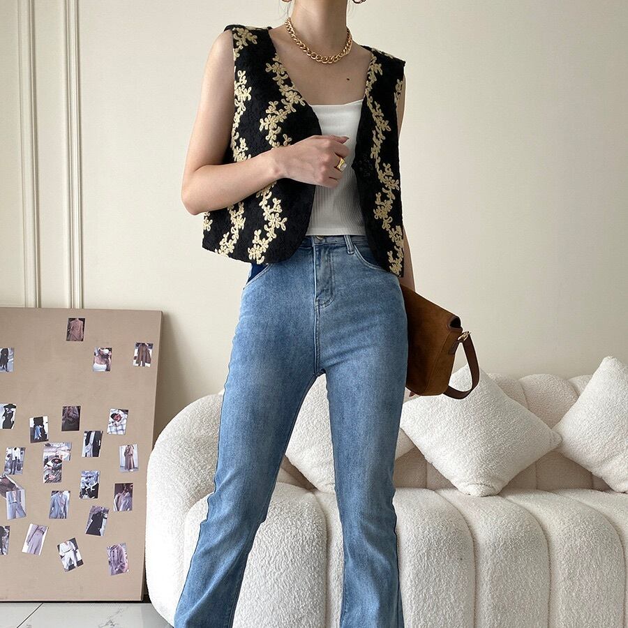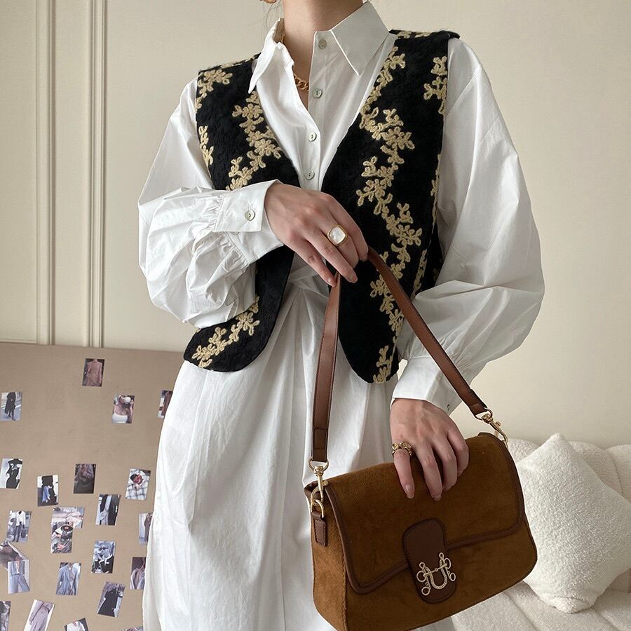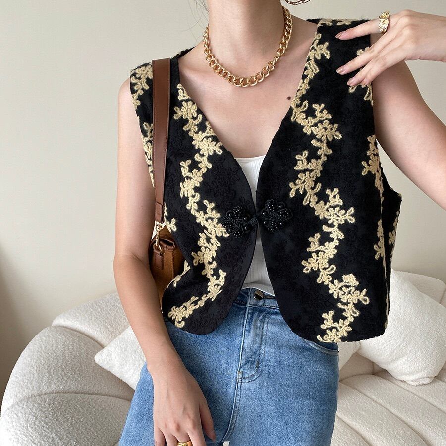 レディース トップス ベスト 羽織 前開き 袖なし ノースリーブ Vネック フェミニン 刺繍 かわいい 大人可愛い 上品 おしゃれ かっこいい レトロ エレガント モダン 主役級 存在感 抜け感 ラブリー キュート ゴシック ラグジュアリー クラシカル ロマンティック デート お出かけ イベント レストラン 女子会 休日 コンサート ライブ カフェ 重ね着 韓国 オルチャン 普段使い 着回し レイヤード トレンド 流行 インスタ映え S M 黒 ブラック ゴールド バイカラー ベーシックカラー 大人カラー