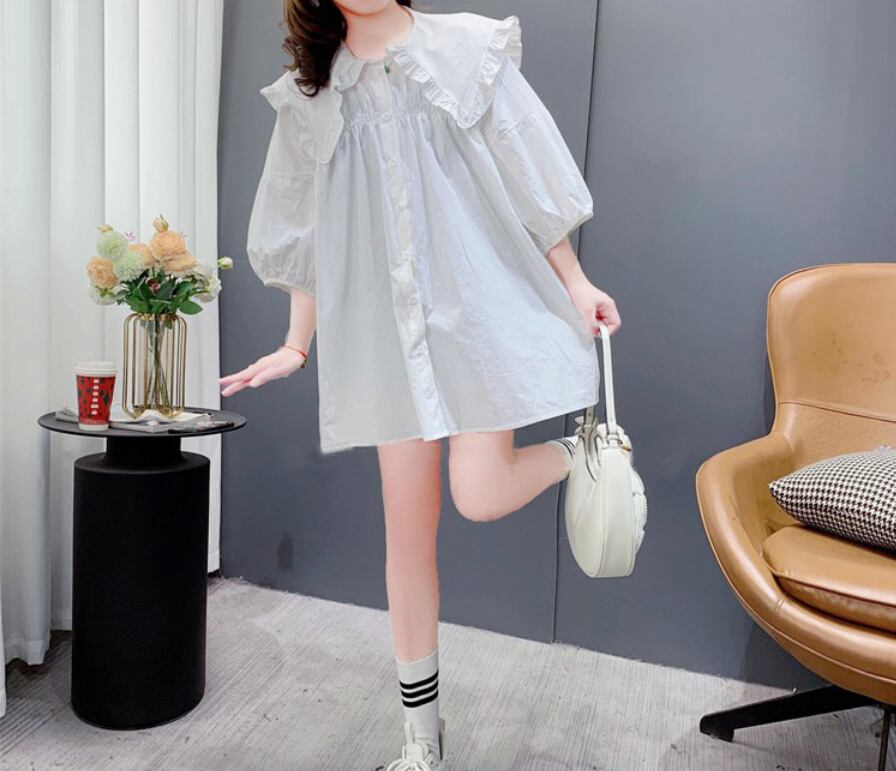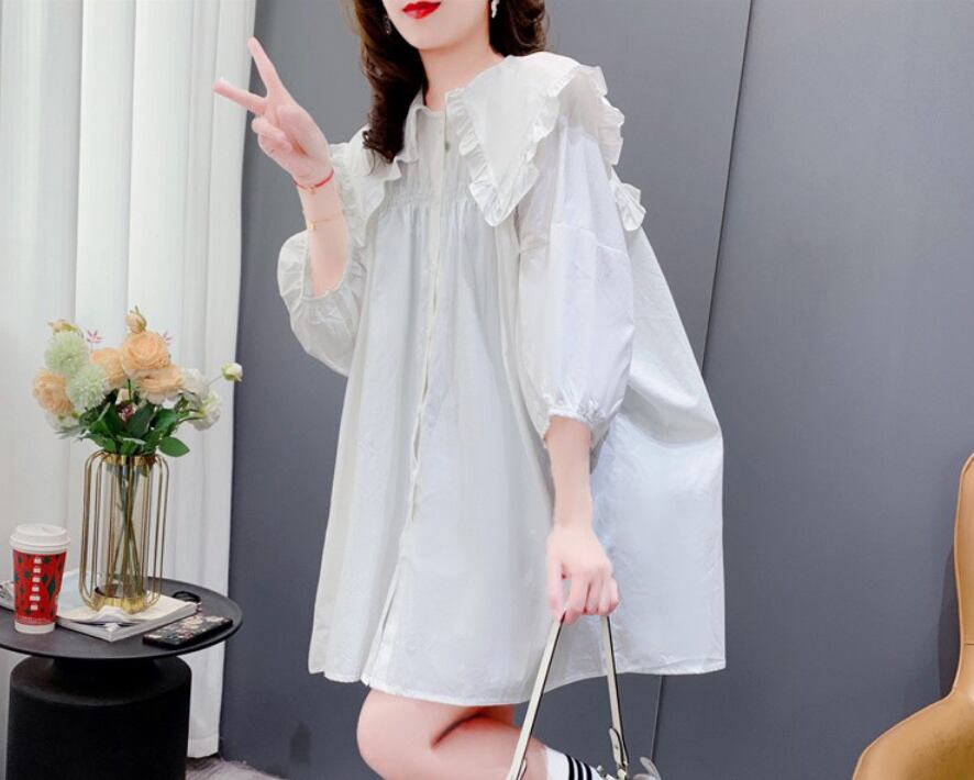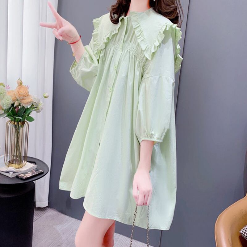 レディース トップス ワンピース シャツ ブラウス 前開き ミニ 7分袖 襟付き セーラーカラー ワイド 薄手 大人可愛い きれいめ シンプル カジュアル おしゃれ こなれ感 ラフ 主役級 存在感 ラブリー キュート 都会的 ベーシック ナチュラル 無地 春 夏 10代 20代 30代 デート お出かけ 旅行 女子会 ショッピング カフェ 普段使い 着回し モテ トレンド 流行 インスタ映え 定番 M L XL 2XL 3XL ゆったり ホワイト グリーン ベーシックカラー 大人カラー カラバリ