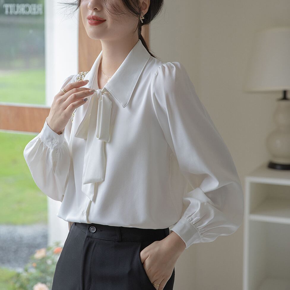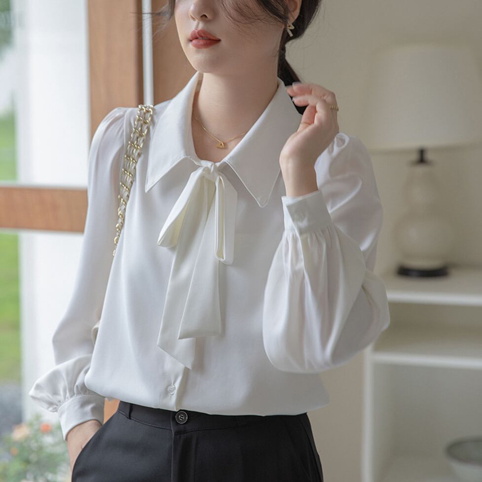 トップス シャツ ブラウス シャツブラウス ボウタイシャツ ボウタイブラウス 襟付きシャツ 襟付きブラウス 長袖シャツ 長袖ブラウス 襟付き 長袖 ボウタイ リボン 無地 レディース かわいい 大人可愛い おしゃれ ガーリー エレガント きれいめ 上品 シンプル ベーシック フォーマル とろみ感 通勤 通学 デート お出かけ イベント 旅行 女子会 休日 ショッピング 体型カバー ゆったり フェミニン