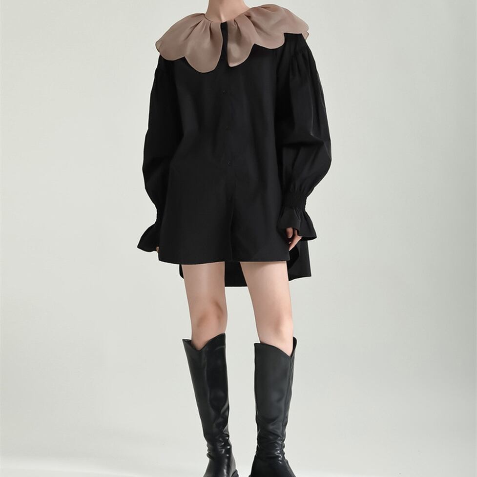 トップス シャツ ブラウス シャツブラウス ワンピース チュニック ビッグカラーシャツワンピース バイカラーシャツワンピース チュニックシャツワンピース 襟付き バイカラー 切り替え オーバーサイズ ビッグシルエット 無地 レディース かわいい 大人可愛い おしゃれ こなれ感 ガーリー エレガント 主役級 存在感 キュート きれいめ 上品 カジュアル 個性的 マニッシュ モード系 ゴシック レトロ 通勤 通学 デート お出かけ イベント 女子会 休日 ショッピング 体型カバー ゆったり フェミニン