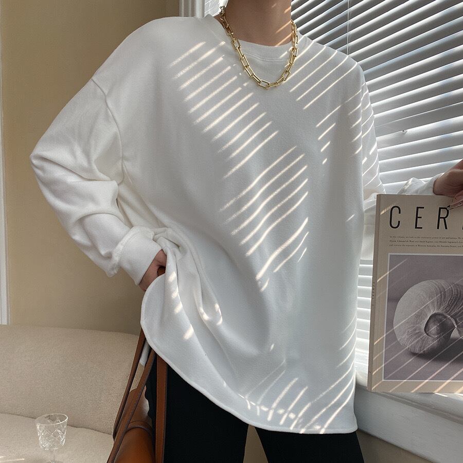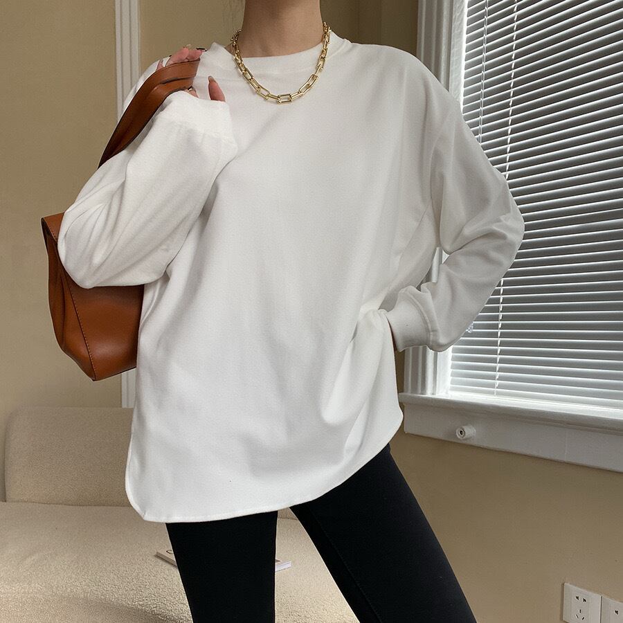 レディース トップス ロンT カットソー プルオーバー Tシャツ ミディアム丈 長袖 ラウンドネック ワイド ストレート ストリート アメカジ シンプル カジュアル おしゃれ かっこいい こなれ感 ラフ メンズライク ボーイッシュ ルーズ 個性的 ベーシック アメリカン アクティブ 無地 春 秋 冬 ママ 10代 20代 30代 40代 学生 お出かけ アウトドア 公園 休日 ショッピング カフェ 韓国 コーデ 楽ちん 体型カバー 普段使い M L ゆったり ゆる 白 ホワイト 茶色 ブラウン グレー