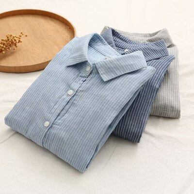 トップス シャツ 長袖 襟付き 前開き ボタン ミディアム丈 薄手 かわいい 大人可愛い きれいめ シンプル 上品 おしゃれ かっこいい カジュアル こなれ感 個性的 主役級 きちんと 存在感 抜け感 春 夏 ベーシック ナチュラル キュート クール メンズライク ストライプ柄 女性用 レディース ママ OL 通勤 オフィス 学生 通学 デート お出かけ お泊まり 女子会 旅行 休日 カフェ ショッピング イベント 普段使い ディナー デイリー 着回し 重ね着 レイヤード S M L XLトレンド モテ