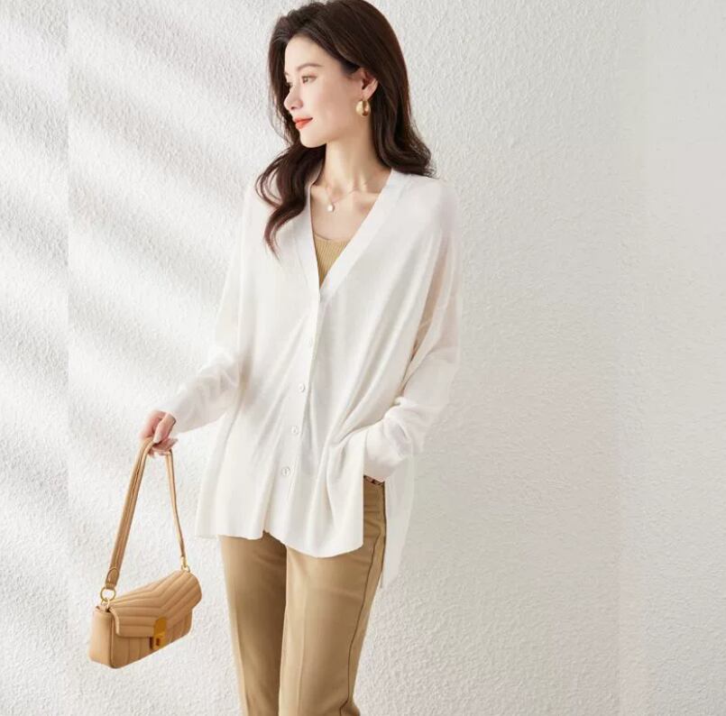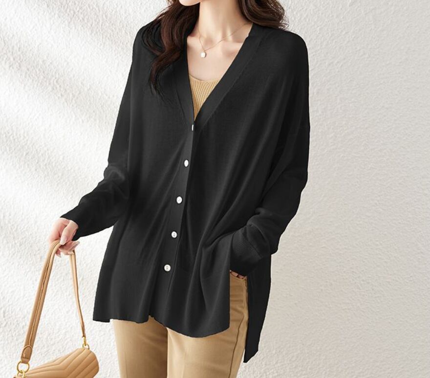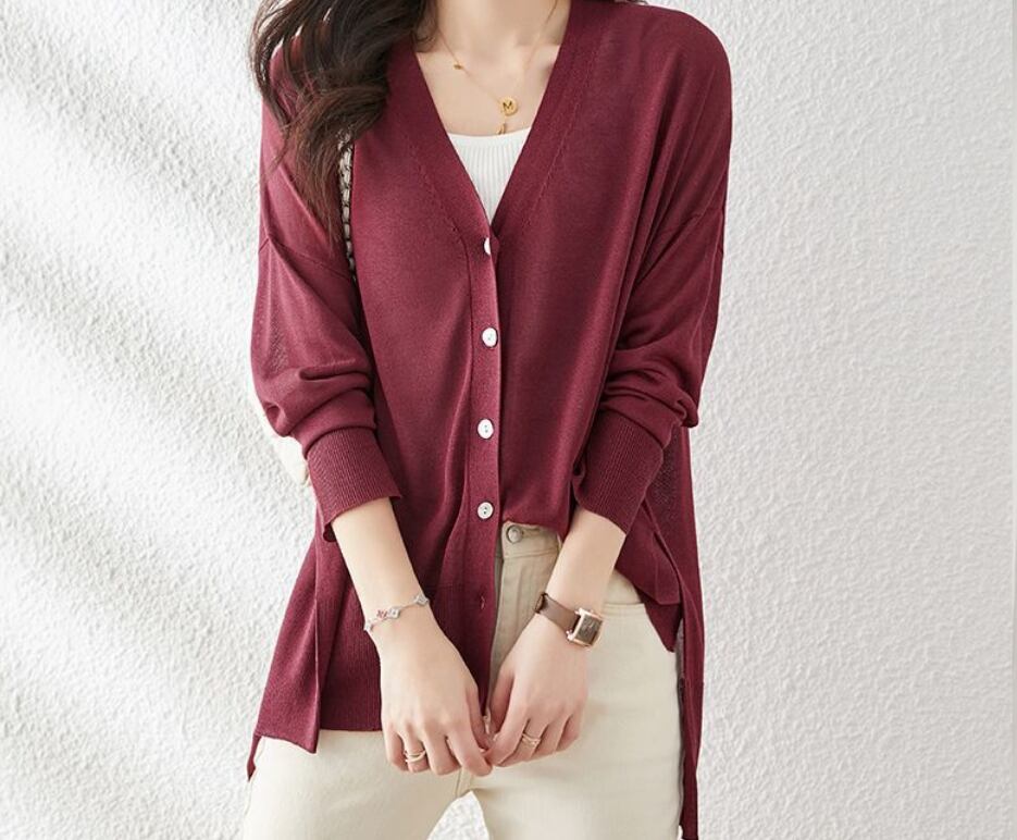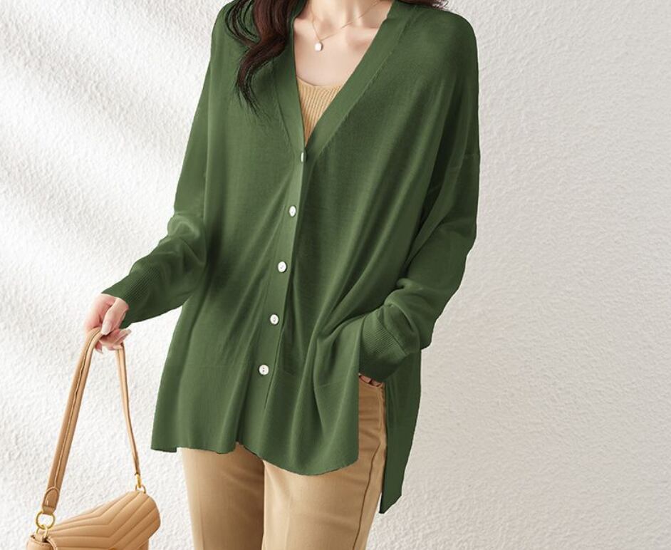多彩なシーンにフィットする、上品さとカジュアルさを兼ね備えた丈長の薄手カーディガンです。