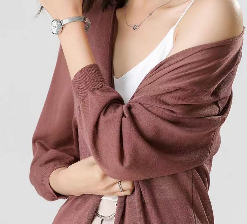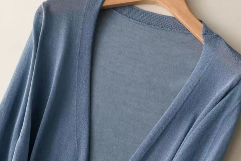 薄手の素材は透け感があり、春や秋のやわらかな日差しのもとでも軽やかに着こなせます。