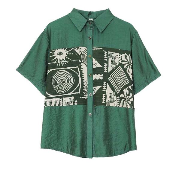 レディース トップス シャツ 普通丈 半袖 襟付き 角襟 ワイド 前開き カジュアル おしゃれ かっこいい レトロ アジアン エスニック エキゾチック こなれ感 ラフ 個性的 クール モード系 モダン 主役級 存在感 都会的 ベーシック ナチュラル プリント 春 夏 ロングシーズン 20代 30代 40代 お出かけ リゾート 旅行 休日 ショッピング カフェ 普段使い 着回し モテ トレンド 流行 インスタ映え 定番 L XL 2XL ゆったり ブラック グリーン ベーシックカラー 大人カラー