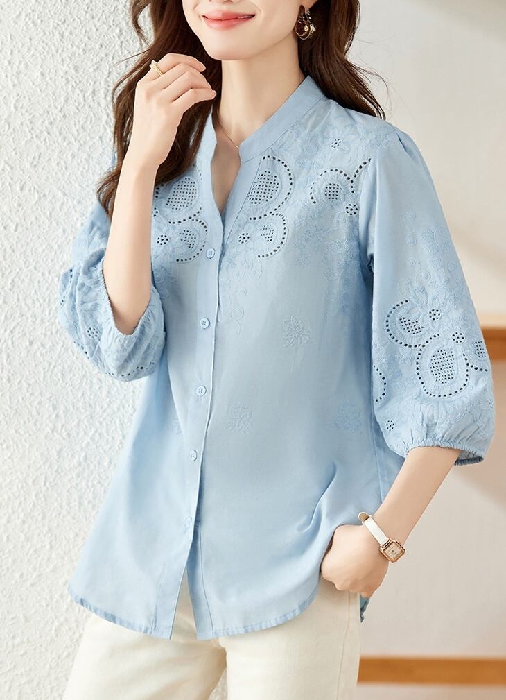 トップス シャツ 7分袖 ハイネック 前開き ボタン ミディアム丈 透け感 透かし編み かわいい 大人可愛い きれいめ シンプル 上品 おしゃれ かっこいい カジュアル こなれ感 個性的 主役級 きちんと 存在感 抜け感 春 夏 ベーシック ナチュラル キュート フェミニン 小花柄 女性用 レディース ママ マタニティ OL 通勤 オフィス 学生 通学 デート お出かけ お泊まり 女子会 旅行 休日 カフェ ショッピング イベント 普段使い ディナー デイリー 着回し 重ね着 M L XL 2XL 3XL