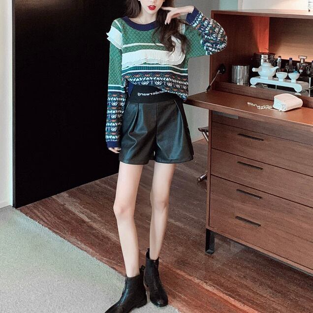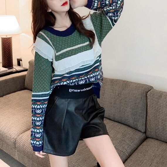 レディース トップス ニット セーター プルオーバー 長袖 Uネック ラウンドネック フェミニン ストリート フリル 切り替えデザイン ドッキング 異素材ミックス かわいい 大人可愛い カジュアル おしゃれ かっこいい レトロ こなれ感 ガーリー 主役級 存在感 抜け感 ヴィンテージ ラブリー キュート クラシカル ロマンティック 総柄 秋 冬 デート お出かけ 女子会 休日 重ね着 韓国 オルチャン 暖かい 防寒 普段使い 着回し レイヤード トレンド 流行 インスタ映え フリーサイズ 緑 グリーン