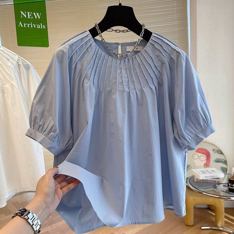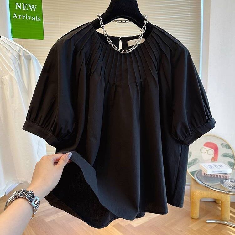 トップス ブラウス 半袖 ラウンドネック ショート丈 プルオーバー シャーリング かわいい 大人可愛い きれいめ シンプル 上品 おしゃれ かっこいい カジュアル こなれ感 個性的 主役級 存在感 抜け感 春 夏 ベーシック ナチュラル キュート フェミニン 清楚 無地 女性用 レディース ママ マタニティ OL 通勤 オフィス 学生 通学 デート お出かけ お泊まり 女子会 旅行 休日 アウトドア カフェ ショッピング イベント 普段使い デイリー 着回し 重ね着 M L XL 2XL トレンド モテ