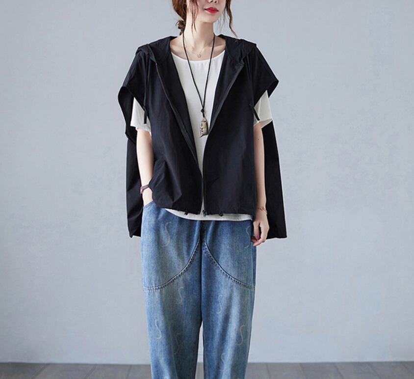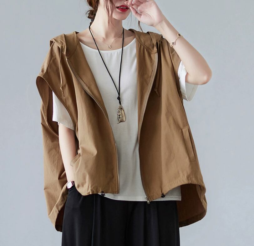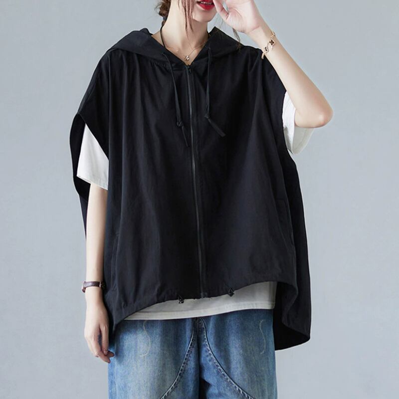 レディース ジャケット アウター 上着 フード付き 丈長 半袖 ワイド ポケット 前開き シンプル カジュアル 上品 おしゃれ こなれ感 ラフ モダン 主役級 存在感 都会的 ベーシック ナチュラル ワイルド 無地 春 夏 ロングシーズン 20代 30代 40代 デート お出かけ アウトドア キャンプ 公園 休日 ショッピング カフェ 重ね着 コーデ 楽ちん 普段使い 着回し モテ トレンド 流行 インスタ映え 定番 L XL ゆったり ブラック グレー カーキ ベーシックカラー 大人カラー カラバリ