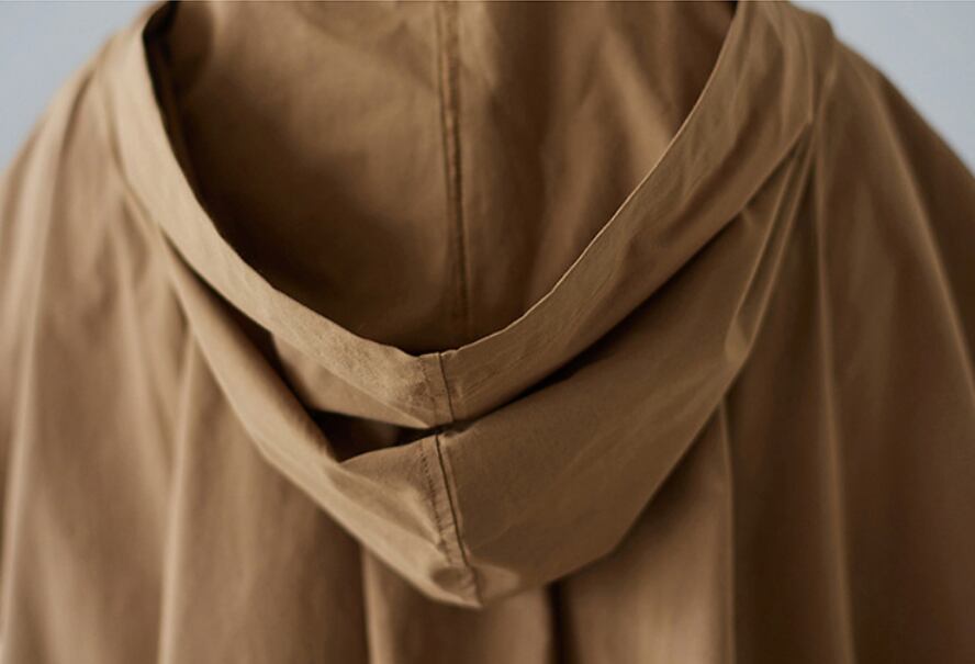 フード付きのデザインが、カジュアルでありながら都会的な印象を与え、丈長のスタイルが体型を美しく見せます。