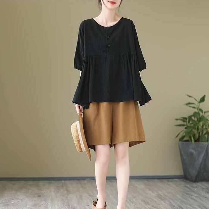 トップス ブラウス 5分袖 ラウンドネック プルオーバー ミディアム丈 切り替えデザイン かわいい 大人可愛い きれいめ シンプル 上品 おしゃれ かっこいい カジュアル こなれ感 個性的 主役級 存在感 ぬけ感 ラフ 春 夏 ベーシック ナチュラル キュート フェミニン 無地 女性用 レディース ママ マタニティ OL 通勤 オフィス 学生 通学 デート お出かけ お泊まり 女子会 旅行 休日 アウトドア カフェ ショッピング イベント 普段使い デイリー 着回し 重ね着 ワンサイズ トレンド モテ