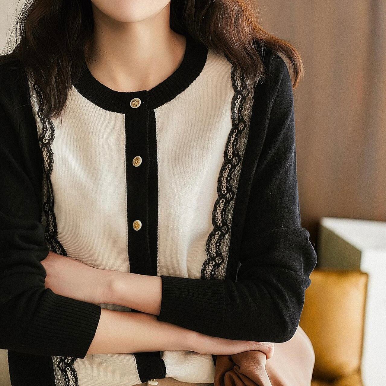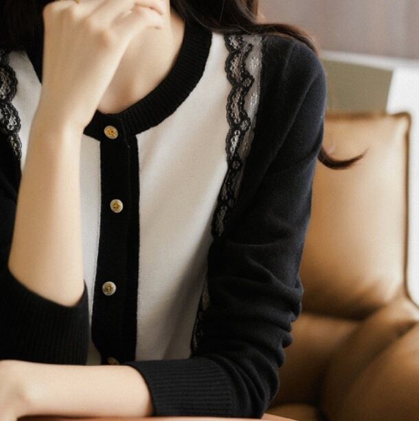 レディース ニット セーター カーディガン 前開き 長袖 Uネック ラウンドネック フェミニン レース 異素材ミックス ニット かわいい 大人可愛い きれいめ 上品 おしゃれ レトロ こなれ感 ガーリー エレガント モダン 抜け感 ヴィンテージ ラブリー キュート ゴシック ロリータ プリンセス 都会的 ラグジュアリー ロマンティック 無地 デート お出かけ イベント レストラン 重ね着 普段使い 着回し レイヤード 清楚 トレンド 流行 インスタ映え フリーサイズ 黒 ブラック バイカラー モノトーン