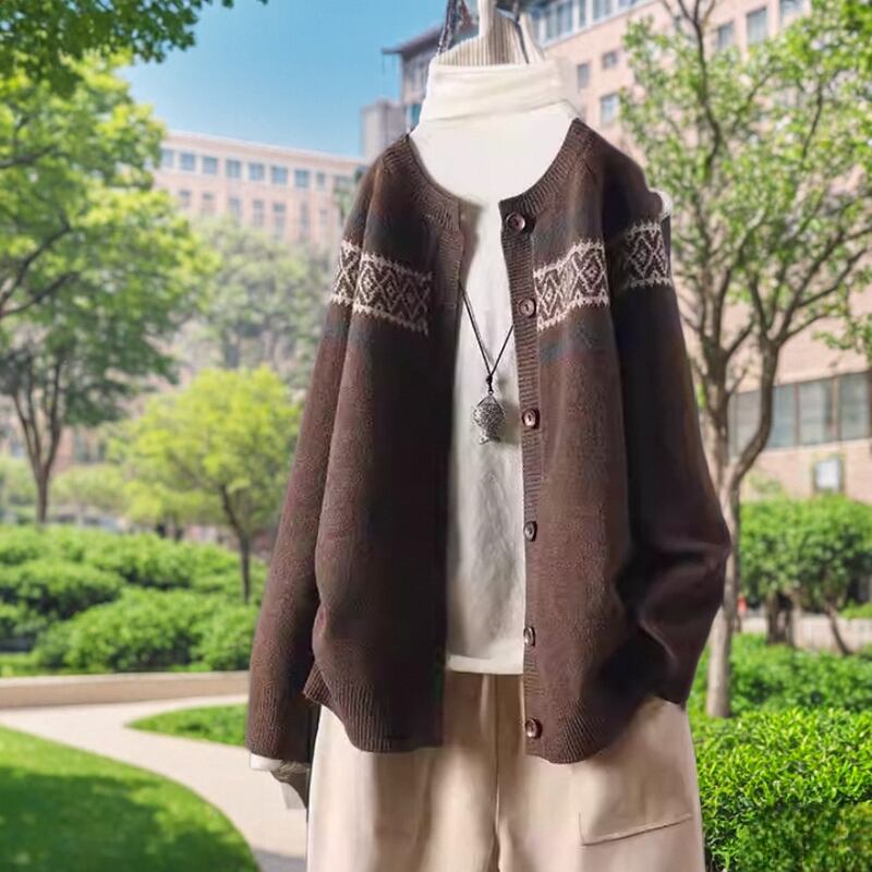 レディース トップス ニット セーター カーディガン 長袖 Uネック ラウンドネック オーバーサイズ ストリート 前開き かわいい カジュアル 上品 おしゃれ かっこいい レトロ アジアン エスニック こなれ感 ラフ メンズライク マニッシュ ボーイッシュ アメリカン プレッピー カントリー アクティブ ナチュラル 秋 冬 アウトドア キャンプ 着回し トレンド M L XL 2XL 3XL 大きいサイズ ビッグ ゆったり ゆる 茶色 ブラウン ライトグレー 黄色 イエロー オフホワイト ブルー レッド
