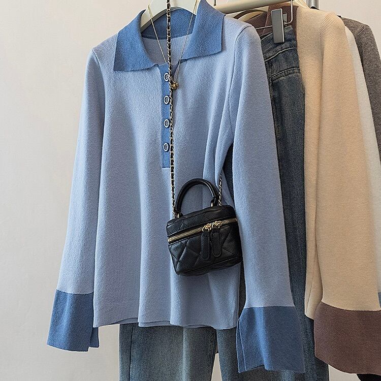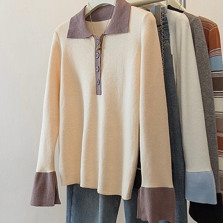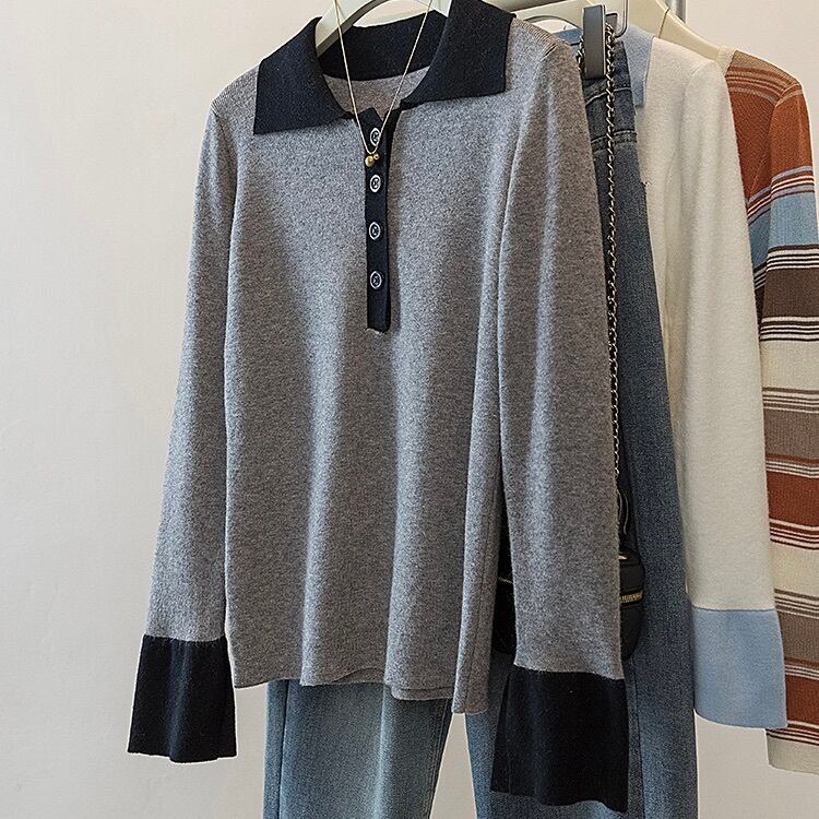 レディース トップス ニット セーター 長袖 襟付き 角襟 ポロカラー バイカラー 配色 きれいめ シンプル カジュアル 上品 おしゃれ かっこいい レトロ こなれ感 ラフ メンズライク マニッシュ ボーイッシュ スポーティー ガーリー 抜け感 キュート クラシカル カレッジ風 学生風 ベーシック アクティブ ナチュラル 無地 秋 冬 お出かけ イベント 旅行 重ね着 韓国 オルチャン 普段使い 着回し レイヤード 定番 S M L XL 小さいサイズ 大きいサイズ 白 ホワイト グレー ベージュ ブルー