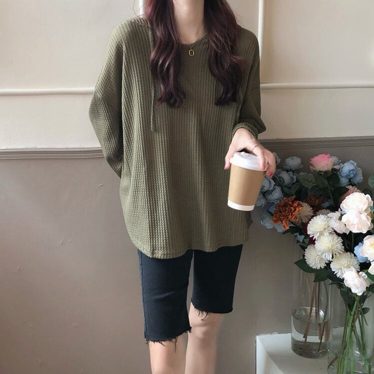 このロングスリーブプルオーバーは、ミディアム丈で絶妙なシルエットを演出します。