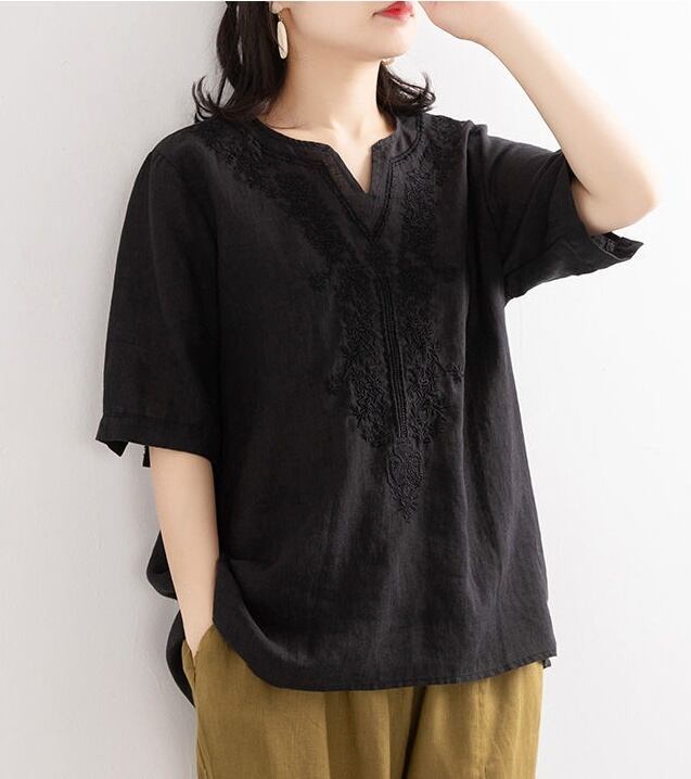 トップス ブラウス 半袖 ラウンドネック ショート丈 プルオーバー 刺繡 かわいい 大人可愛い きれいめ シンプル 上品 おしゃれ かっこいい カジュアル こなれ感 個性的 主役級 存在感 抜け感 春 夏 ベーシック ナチュラル キュート フェミニン 清楚 無地 女性用 レディース ママ マタニティ OL 通勤 オフィス 学生 通学 デート お出かけ お泊まり 女子会 旅行 休日 アウトドア カフェ ショッピング イベント 普段使い デイリー 着回し 重ね着 M L XL 2XL 3XL トレンド モテ