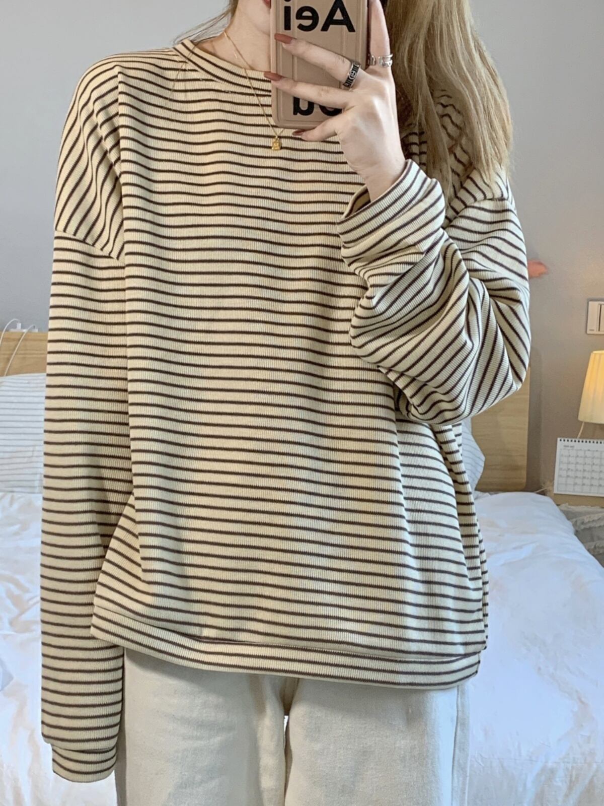 トップス カットソー Tシャツ ロングTシャツ 長袖 ラウンドネック プルオーバー ミディアム丈 かわいい 大人可愛い きれいめ シンプル 上品 おしゃれ かっこいい カジュアル こなれ感 個性的 主役級 存在感 抜け感 秋 冬 ベーシック ナチュラル クール ボーダー柄 女性用 レディース ママ OL 通勤 オフィス 学生 通学 デート お出かけ お泊まり 女子会 旅行 休日 アウトドア カフェ ショッピング イベント 重ね着 普段使い デイリー 着回し 重ね着 S M L XL 定番アイテム