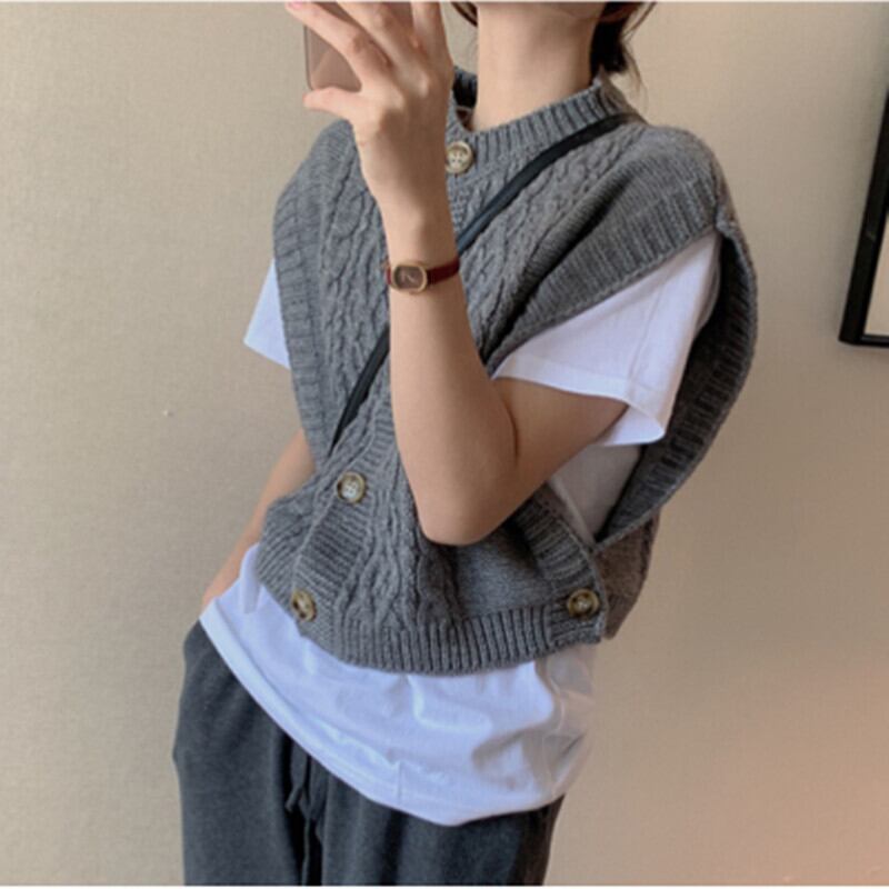 ケーブル編みのニットベストです。