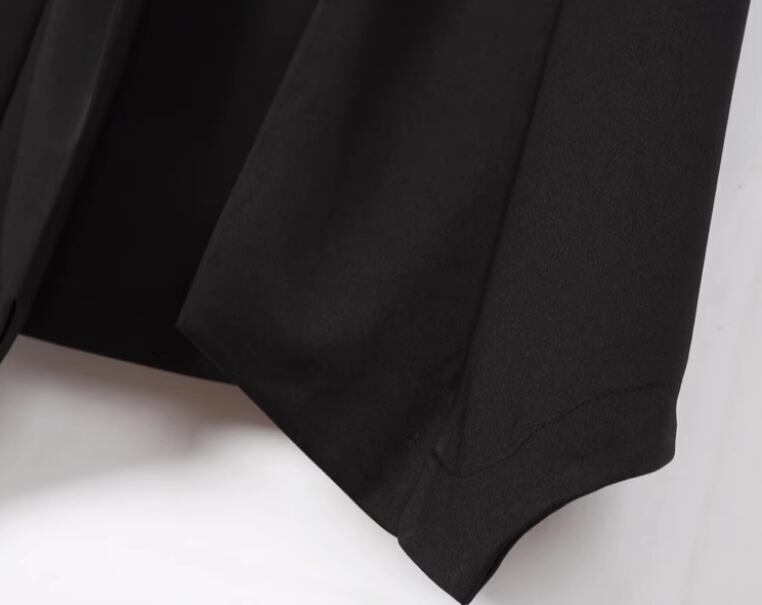 前開きのデザインで、羽織りやすさを重視しつつ、長めの丈感がスタイルを美しく見せてくれます。
