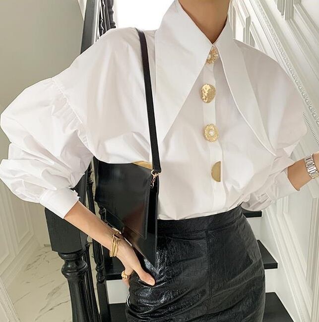 レディース トップス シャツ ブラウス 前開き 長袖 ボリューム袖 Vネック 襟付き 角襟 フェミニン ボタン ヴィンテージ かわいい 大人可愛い きれいめ 上品 おしゃれ かっこいい レトロ こなれ感 ガーリー 個性的 クール モード系 エレガント モダン 主役級 存在感 ヴィンテージ ラブリー キュート 都会的 ラグジュアリー クラシカル アクティブ ロマンティック 無地 デート お出かけ パーティー イベント レストラン 女子会 休日 重ね着 トレンド 流行 インスタ映え フリーサイズ 白 ホワイト