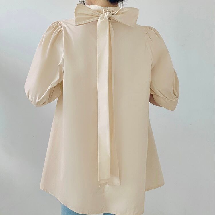 レディース トップス シャツ ブラウス 5分袖 ボリューム袖 パフスリーブ バルーン袖 スタンドカラー りぼんタイ ネクタイ ネクタイ付き フェミニン リボン バックリボン バックコンシャス かわいい 大人可愛い きれいめ シンプル 上品 おしゃれ レトロ こなれ感 ガーリー エレガント フォーマル 抜け感 ラブリー キュート プリンセス 都会的 ラグジュアリー クラシカル ロマンティック 春 秋 お花見 合コン コンパ 婚活 M L XL 白 ホワイト 黒 ブラック 茶色 ブラウン ベージュ ピンク