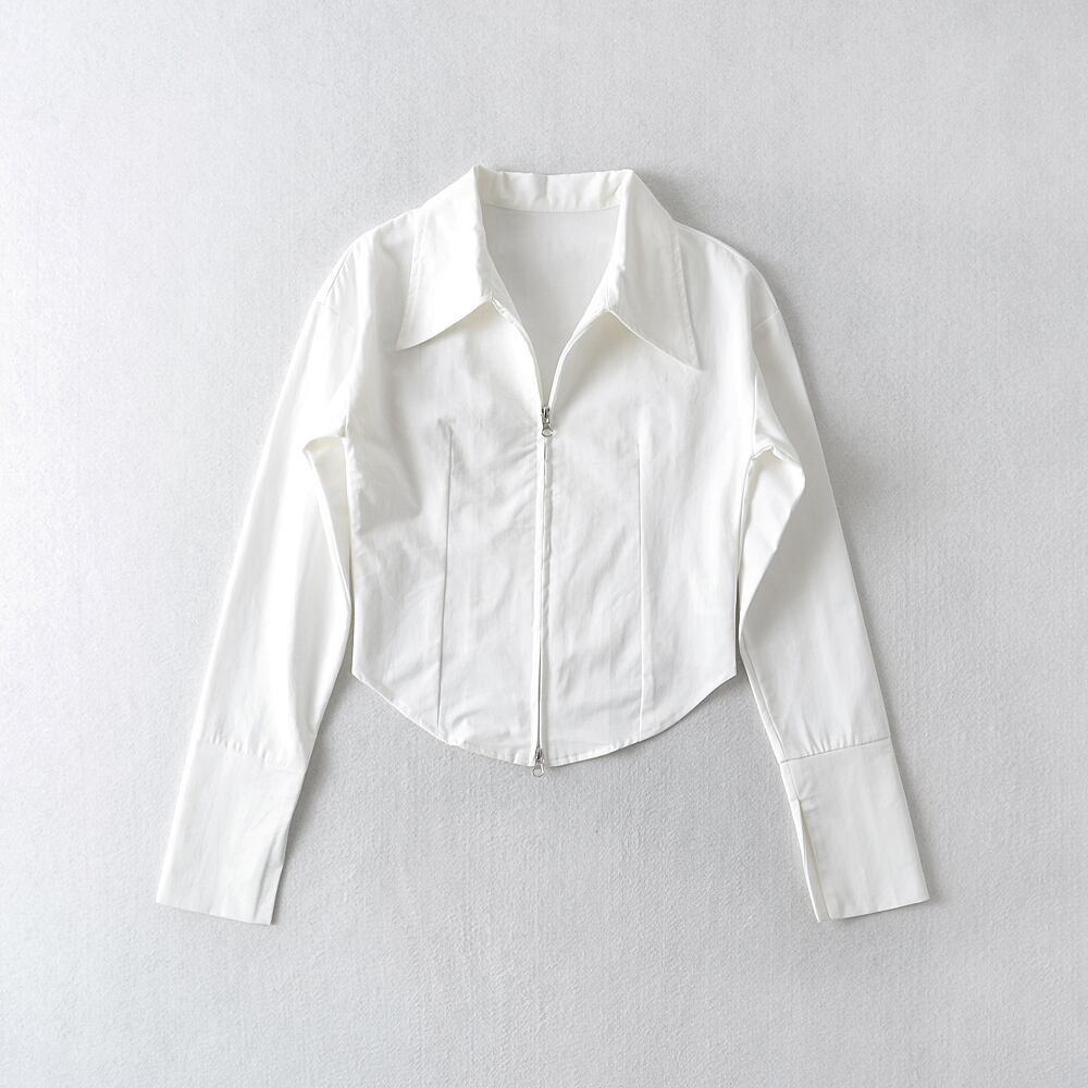 レディース トップス シャツ ブラウス ミニ ショート 長袖 襟付き 角襟 フェミニン ストリート ファスナー ハイウエスト ヴィンテージ アメカジ きれいめ シンプル 上品 おしゃれ かっこいい レトロ スポーティー 個性的 クール エレガント モダン 存在感 フォーマル キュート ベーシック アメリカン カントリー アクティブ ナチュラル 無地 春 秋 お出かけ パーティー イベント 休日 重ね着 普段使い 着回し レイヤード トレンド 流行 定番 S M L 白 ホワイト 黒 ブラック 水色 ブルー