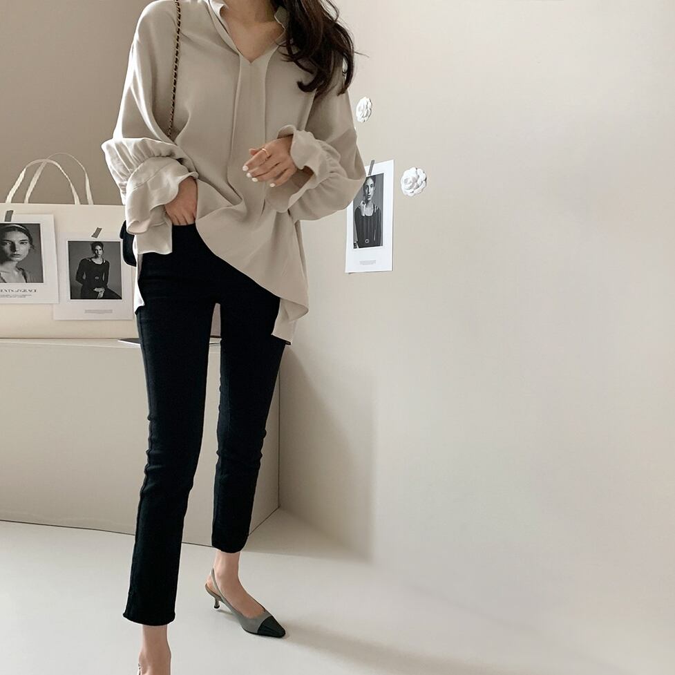 トップス ブラウス シャツ プルオーバー シャツブラウス スキッパーシフォンブラウス 長袖シフォンブラウス スキッパーシャツ シフォンブラウス シフォンシャツ 長袖 シフォン Vネック フリル 無地 レディース かわいい 大人可愛い おしゃれ こなれ感 ガーリー エレガント 主役級 存在感 キュート きれいめ 上品 クラシカル 抜け感 レトロ 通勤 通学 デート お出かけ イベント 旅行 女子会 休日 ショッピング 体型カバー ゆったり フェミニン