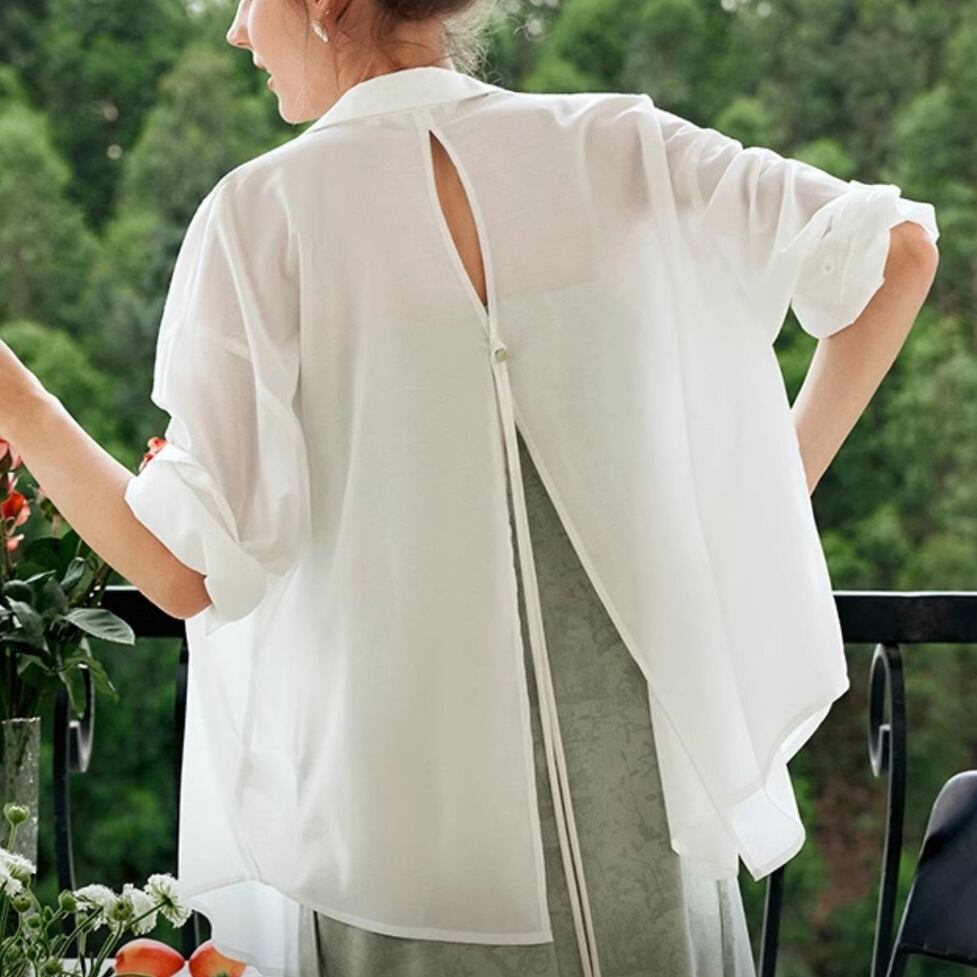 トップス シャツ ブラウス シャツブラウス バックシャンシャツ バックコンシャスブラウス 襟付きシャツ バックカットシャツ シフォンシャツ 無地 長袖 襟付き バックスリット シフォン フレア レディース かわいい 大人可愛い おしゃれ こなれ感 ガーリー エレガント 主役級 存在感 きれいめ 上品 シンプル 個性的 クール とろみ感 抜け感 レトロ 通勤 通学 デート お出かけ イベント 旅行 女子会 休日 ショッピング 体型カバー ゆったり フェミニン
