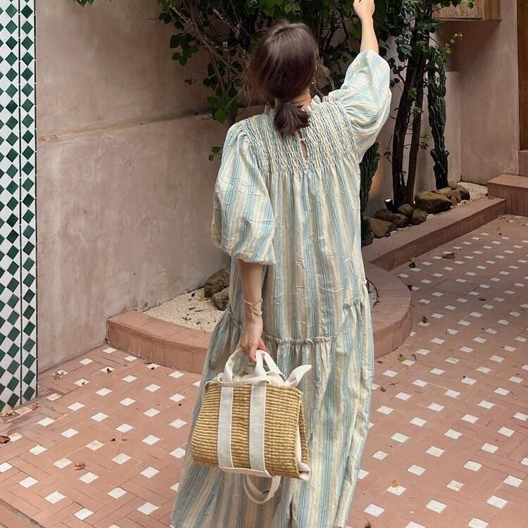 ワンピース マキシ丈ワンピース 半袖 ボリューム袖 ハイネック フリル マキシ丈 かわいい 大人可愛い きれいめ シンプル 上品 おしゃれ かっこいい カジュアル こなれ感 個性的 主役級 存在感 抜け感 春 夏 ベーシック ナチュラル キュート フェミニン 無地 女性用 レディース ママ マタニティ OL 通勤 オフィス 学生 通学 デート お出かけ お泊まり 女子会 旅行 休日 リゾート カフェ ショッピング コンパ 普段使い デイリー 着回し 重ね着 ワンサイズ ゆったり 楽ちん モテ