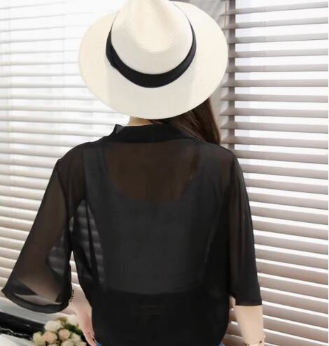 薄手の素材で、夏の軽やかなコーディネートにぴったりです。