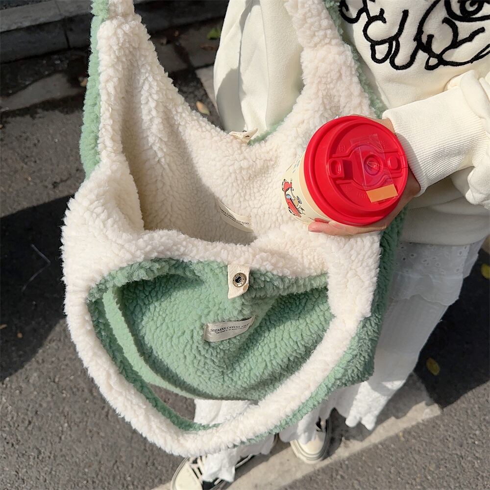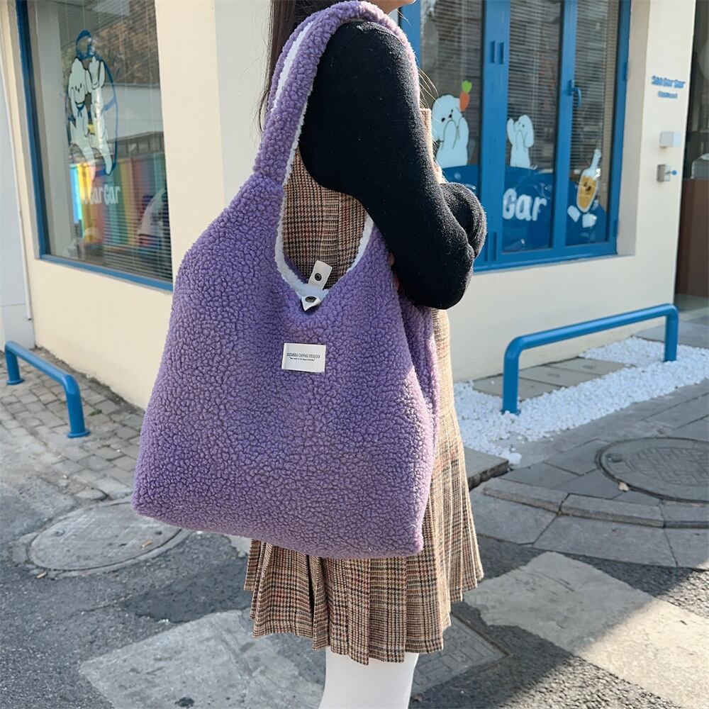 バッグ カバン レディース ショルダー ハンドバッグ 肩がけ 手持ち デイバッグ リバーシブル ボタン もこもこ ふわふわ ボア かわいい 大人可愛い きれいめ シンプル カジュアル お洒落 レトロ こなれ感 ラフ ラブリー キュート ガーリー 存在感 抜け感 華やか フェミニン スタイリッシュ 無地 デート お出かけ 旅行 お買い物 女子会 休日 普段使い 双子 韓国 コーデ スタイル インスタ映え 秋 冬 緑 紫 茶色 灰色 ベージュ ピンク パステルカラー グリーン パープル ブラウン グレー