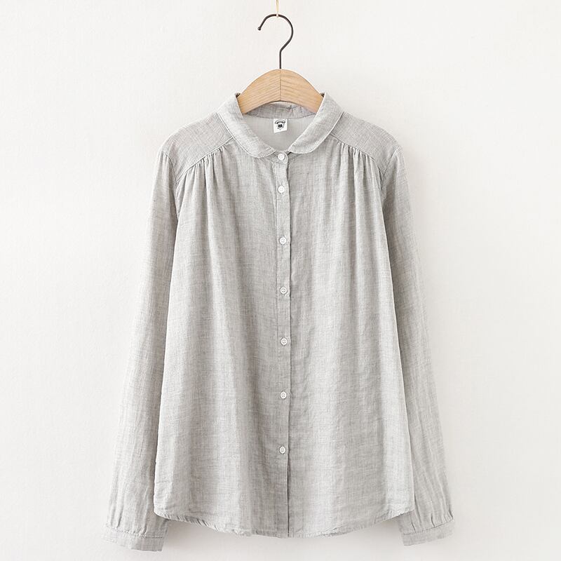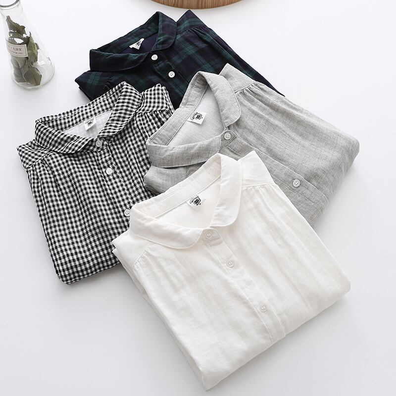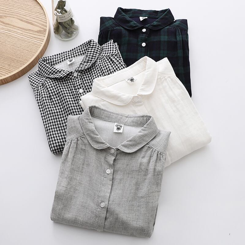 レディース トップス シャツ ブラウス 長袖 襟付き 丸襟 ストレート フェミニン タック 前開き ギャザー 綿 コットン ガーゼ かわいい 大人可愛い シンプル カジュアル おしゃれ こなれ感 ラフ ガーリー 主役級 存在感 抜け感 キュート ベーシック ナチュラル 無地 チェック ギンガムチェック 秋 デート お出かけ 女子会 休日 ショッピング カフェ 韓国 オルチャン コーデ 体型カバー 普段使い 着回し インスタ映え 定番 M L ホワイト グレー グリーンチェック ブラックチェック