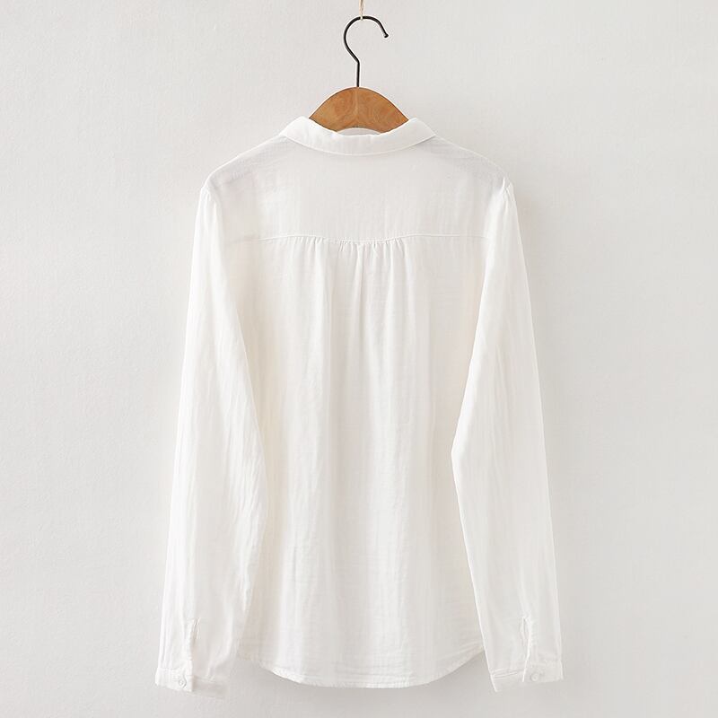 ナチュラルな雰囲気で丸襟が大人可愛い長袖シャツブラウス。