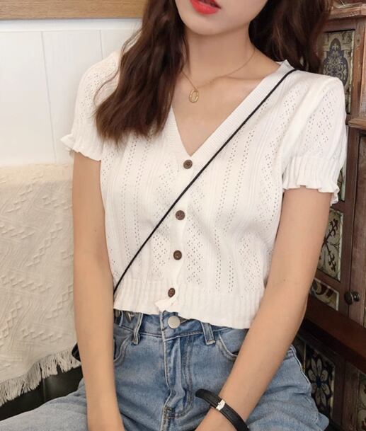 レディース トップス 前開き ショート丈 半袖 Vネック 襟なし スリム 細身 フェミニン 薄手 大人可愛い シンプル カジュアル おしゃれ こなれ感 ラフ ガーリー 主役級 存在感 キュート 都会的 ベーシック ナチュラル 無地 春 夏 ロングシーズン 10代 20代 デート お出かけ 女子会 ショッピング カフェ 韓国 オルチャン コーデ 楽ちん 普段使い 着回し モテ 清楚 トレンド 流行 インスタ映え 定番 M L XL 白 ホワイト 黒 ブラック ベーシックカラー 大人カラー カラバリ