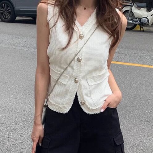 レディース トップス ジャケット ベスト 前開き 普通丈 袖なし ノースリーブ Vネック 襟なし タイト スリム 細身 フェミニン ポケット 大人可愛い きれいめ シンプル 上品 おしゃれ こなれ感 ラフ エレガント 主役級 存在感 都会的 ベーシック ナチュラル 無地 夏 10代 20代 30代 デート お出かけ 旅行 女子会 休日 ショッピング カフェ コーデ 楽ちん 普段使い 着回し モテ トレンド 流行 インスタ映え 定番 フリーサイズ ホワイト ブルー ベーシックカラー 大人カラー カラバリ