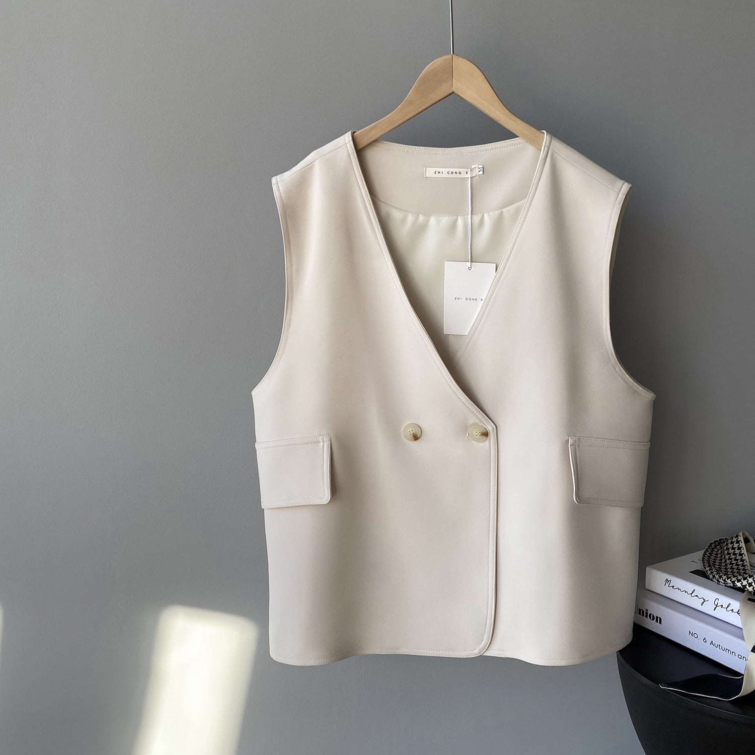 ポケット付きのミディアム丈ベスト