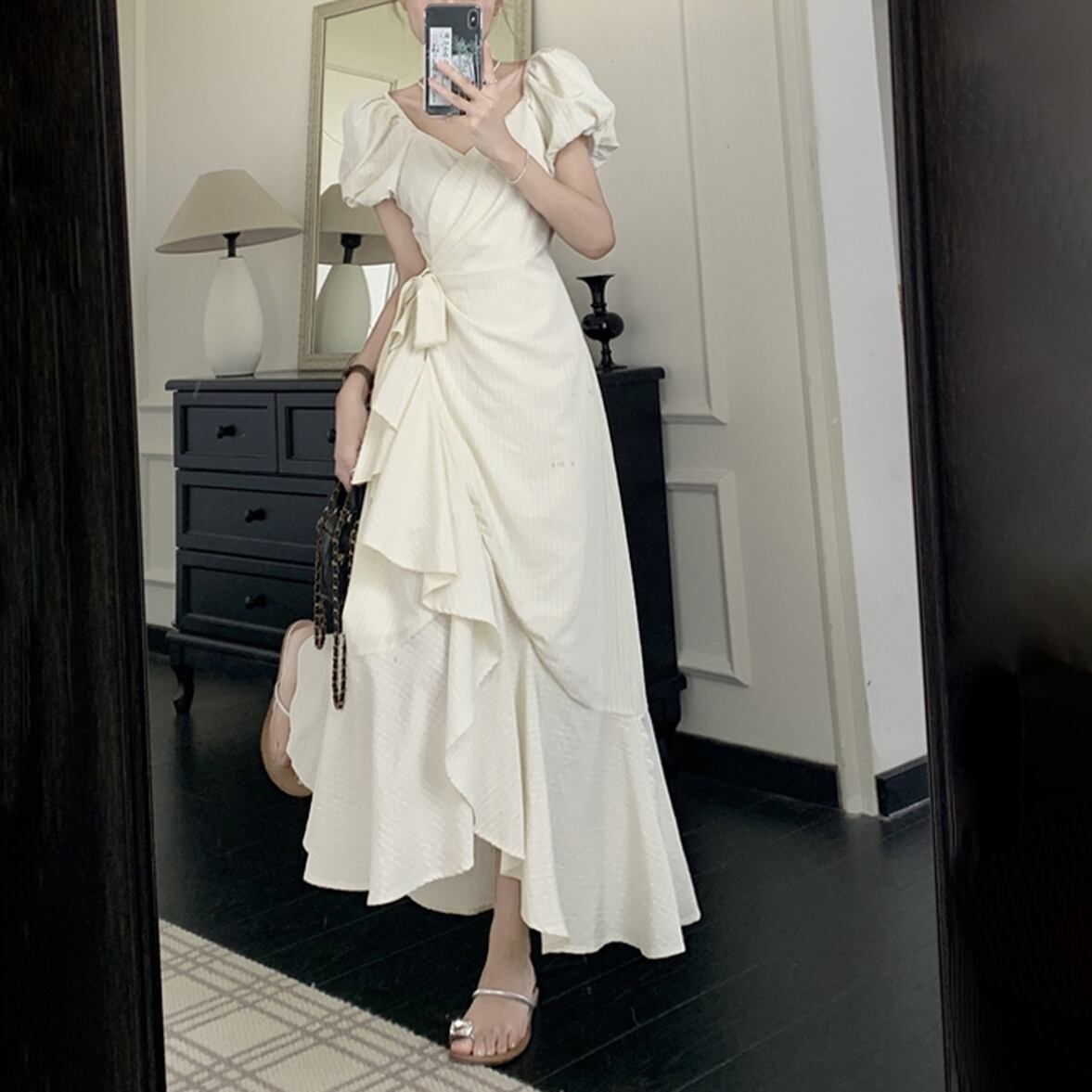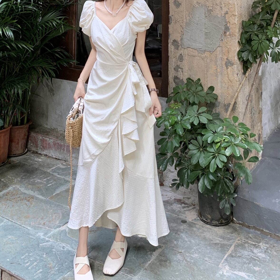 ワンピース ロングワンピース フレアワンピース 半袖ワンピース ロングドレープワンピース ウエストリボンワンピース ギャザーワンピース ロングフレアワンピース ロング丈 ウエストリボン 半袖 パフスリーブ フリル 無地 ドレープ ギャザー フレア レディース かわいい 大人可愛い おしゃれ こなれ感 ガーリー エレガント 主役級 きれいめ 上品 レトロ 通勤 通学 デート お出かけ ラグジュアリー ロマンティック 休日 体型カバー ゆったり フェミニン