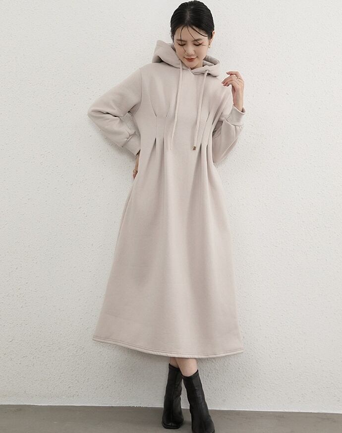 フード付きのAラインシルエットは、カジュアルながらも上品でキレイめな印象を与えてくれます。