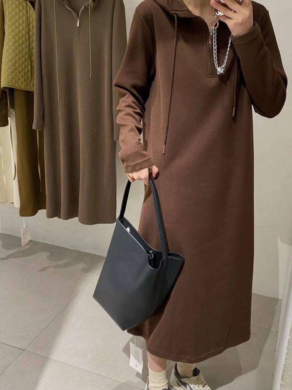 ワンピース ミモレ丈ワンピース 長袖 ハーフジップ ポケット フード付き ミモレ丈 かわいい 大人可愛い きれいめ シンプル 上品 おしゃれ かっこいい カジュアル こなれ感 個性的 ラフ ルーズ 主役級 存在感 抜け感 秋 冬 ベーシック ナチュラル キュート メンズライク 無地 女性用 レディース ママ マタニティ OL 通勤 学生 通学 デート お出かけ お泊まり 女子会 旅行 休日 カフェ ショッピング コンパ 普段使い デイリー 着回し 重ね着 L XL 2XL 3XL 4XL 5XL