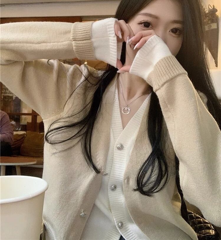 トップス カーディガン ニットカーディガン 長袖 Vネック 前開き ボタン ミディアム丈 重ね着風 かわいい 大人可愛い きれいめ シンプル 上品 おしゃれ かっこいい カジュアル こなれ感 個性的 主役級 存在感 抜け感 秋 冬 ベーシック ナチュラル クール フェミニン 無地 女性用 レディース ママ OL 通勤 オフィス 学生 通学 デート お出かけ お泊まり 女子会 旅行 休日 アウトドア カフェ ショッピング イベント レイヤード 普段使い デイリー 着回し 重ね着 ワンサイズ トレンド モテ