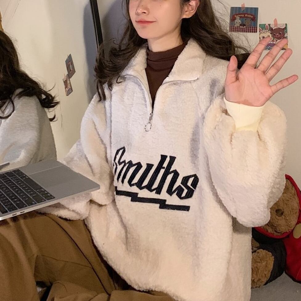 トップス ニット プルオーバー スウェット ハーフジップもこもこプルオーバー えりつきニットプルオーバー ビッグプルオーバーニット ワイドもこもこニット 襟付き ハーフジップ 長袖 ジップアップ オーバーサイズ ビッグシルエット もこもこ ふわふわ ロゴ レディース かわいい 大人可愛い おしゃれ こなれ感 ガーリー エレガント 主役級 存在感 キュート マニッシュ 通勤 通学 デート お出かけ イベント 旅行 休日 ショッピング 体型カバー ゆったり フェミニン