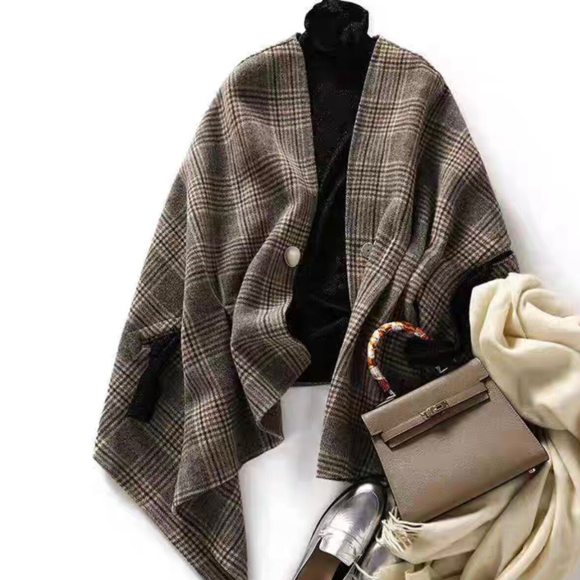レディース ジャケット コート 上着 ポンチョ風 羽織 前開き ミディ丈 袖なし Aライン オーバーサイズ タック タックプリーツ ボタン ナイロン 大人可愛い きれいめ カジュアル 上品 おしゃれ レトロ こなれ感 エレガント モダン 都会的 ラグジュアリー クラシカル チェック 秋 冬 ママ デート お出かけ 女子会 休日 バカンス 高原 ホテル ガーデン ショッピング 暖かい 防寒 体型カバー プチプラ 普段使い 着回し 定番 S M L XL サイズ展開 茶色 ブラウン 大人カラー 秋カラー