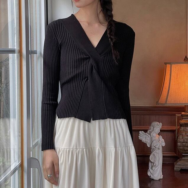 レディース トップス ニット セーター プルオーバー 長袖 カシュクール タイト スリム 細身 フェミニン タック ギャザー リブニット かわいい 大人可愛い きれいめ シンプル 上品 おしゃれ かっこいい レトロ こなれ感 ラフ 抜け感 ヴィンテージ ラブリー キュート ベーシック ロマンティック ナチュラル 秋 冬 デート お出かけ イベント レストラン 女子会 休日 ショッピング 重ね着 韓国 オルチャン 普段使い 着回し レイヤード インスタ映え フリーサイズ 白 ホワイト 黒 ブラック グレー
